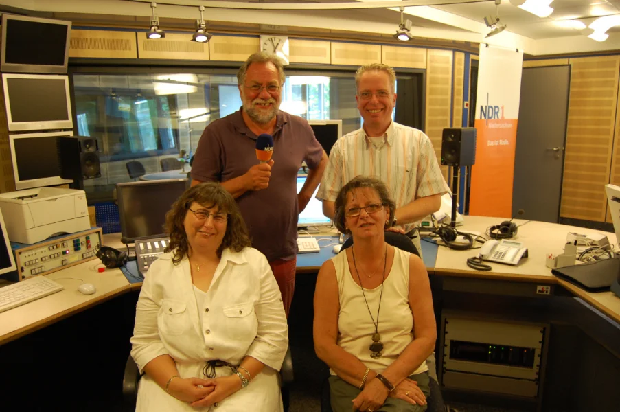 Ein weiterer Höhepunkt in diesem Jubiläumsjahr war sicher auch die Gestaltung der "Plattenkiste" beim Radiosender NDR1-Niedersachsen am 23.07.2009 zwischen 12.00 und 13.00 Uhr. Hier machen die Hörer ein Musikprogramm.Im Rahmen der Sendung konnte unser Vorstand mit K. Andreas Steinkrauß, Elke Fels und Anke Höppner auch über unsere Arbeit erzählen und wir hatten mit Hans-Heinrich Obuch einen überaus charmanten und kompetenten Moderator, der unser Lampenfieber mit Professionalität spielend in den Griff bekam.